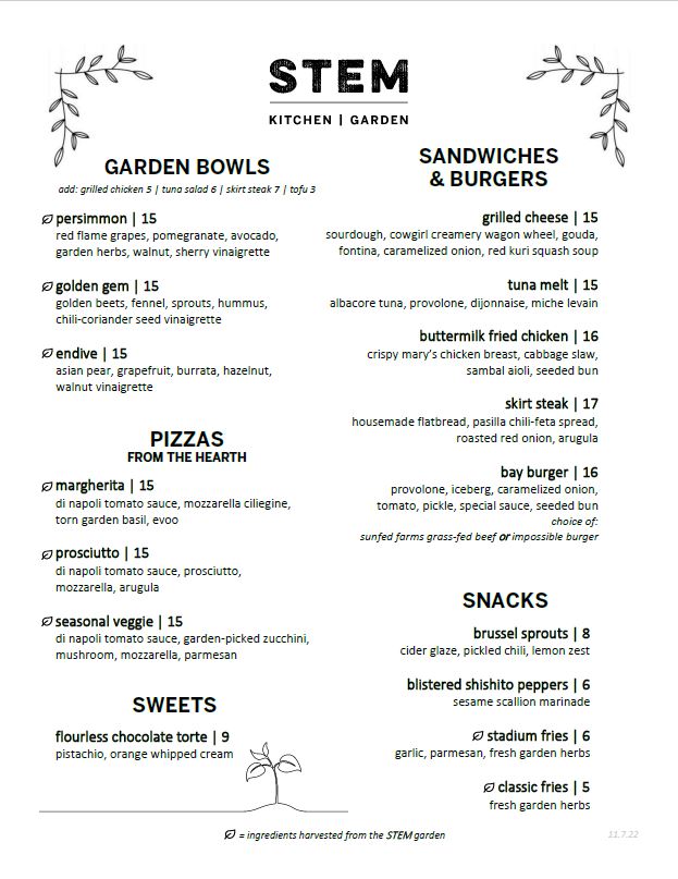 Step into a vibrant world of fresh flavors at Stem Kitchen | Garden Menu. Nestled at 499 Illinois St in San Francisco, this menu celebrates the essence of nature with each dish, offering a rich selection of garden-inspired creations. Whether you’re craving light, crisp salads or hearty vegetable-focused entrees, the options here are as diverse as they are delicious.